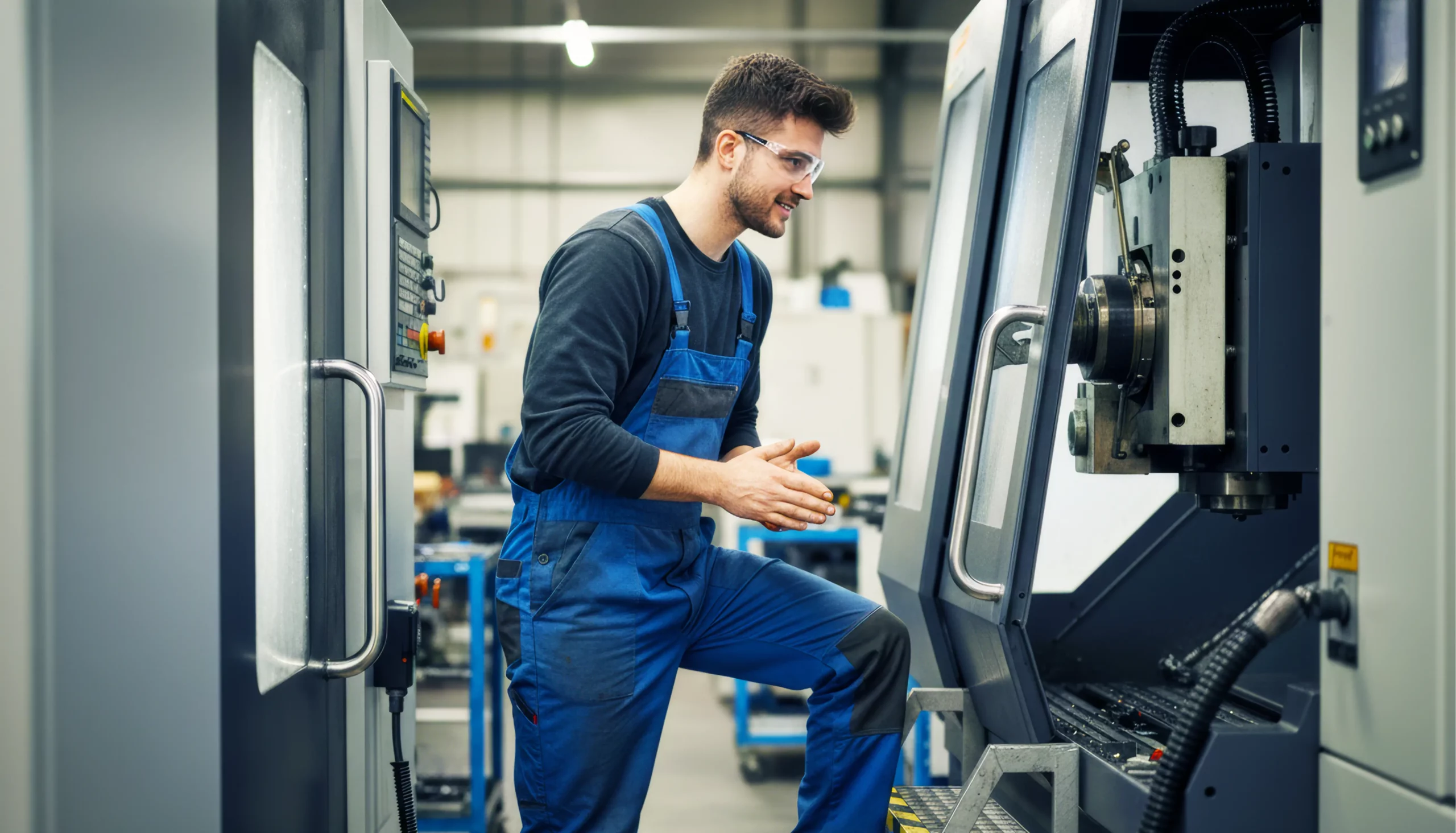 Die duale Ausbildung dauert dreieinhalb Jahre. In der Berufsschule lernst du technische Grundlagen wie Fertigung, Montage, Steuerungstechnik, Werkstoffkunde und systematische Fehlersuche. Im Betrieb setzt du dieses Wissen direkt ein: Du stellst Werkstücke her, nutzt präzise Messmittel, wartest Anlagen nach Plan und dokumentierst deine Ergebnisse. Schritt für Schritt wächst so dein technisches Verständnis – und damit deine Verantwortung.
